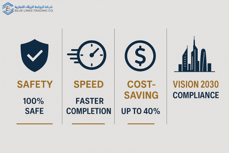 مع الروابط الزرقاء، لا يحصل العميل على معدات متقدمة فقط، بل على خبرة محلية + تقنية عالمية، وهي معادلة النجاح لأي مشروع صناعي أو عمراني.